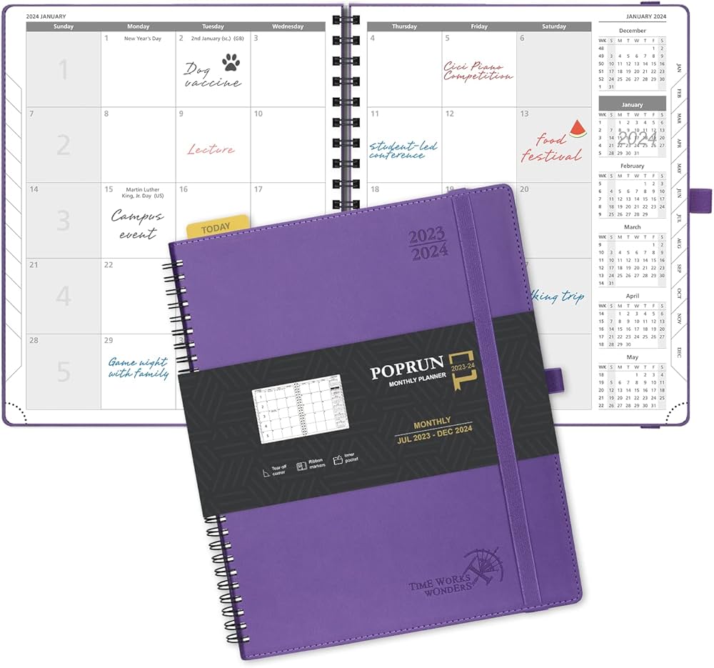 POPRUN Agenda mensuel 2023 2024 (21,6 x 26,6 cm) Calendrier 18