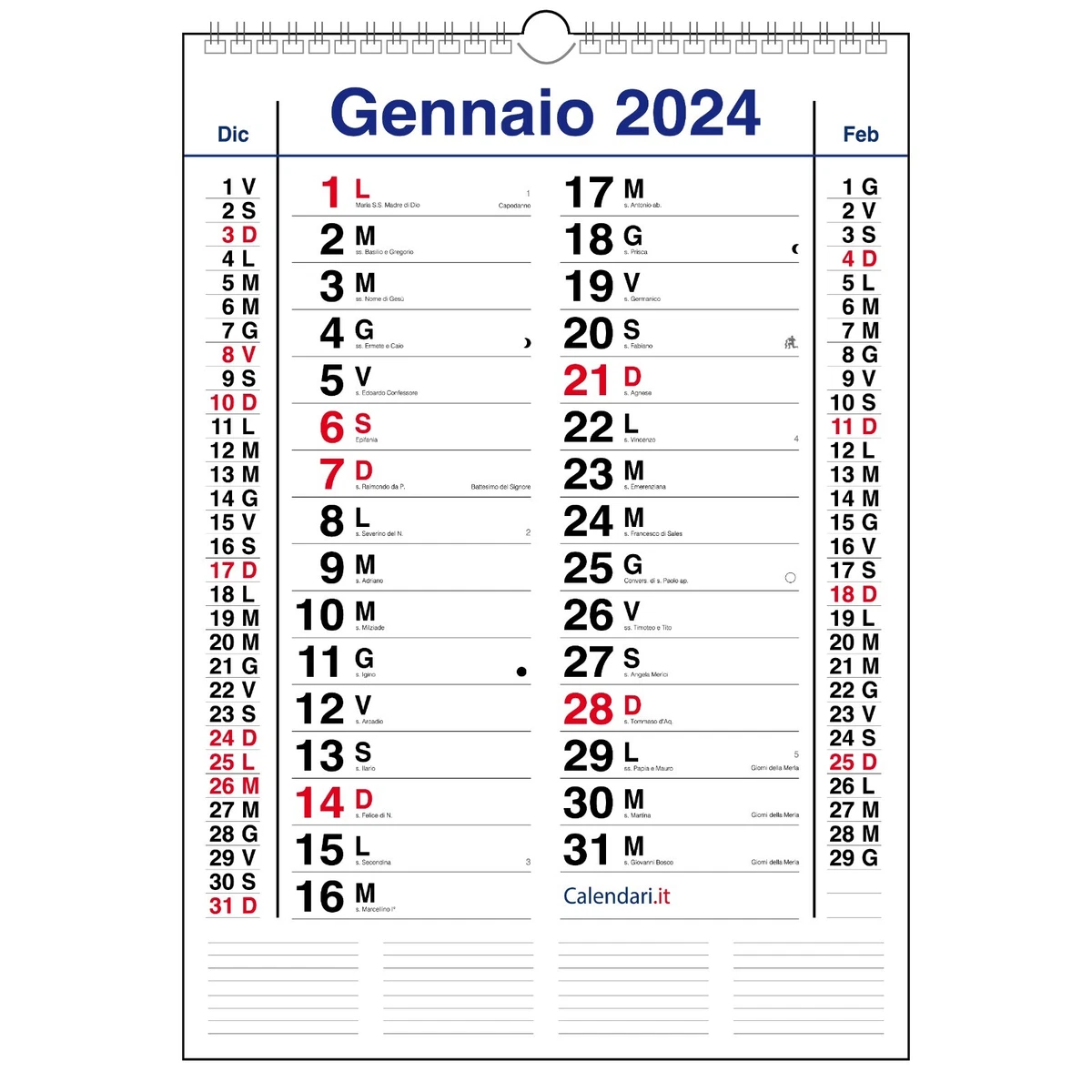Calendario 2024 da muro mod. XL con più spazio per scrivere. (A3