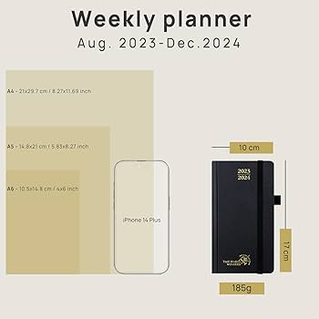 POPRUN Weekly Portrait Diary 2023 2024 16.5 x 9 cm, Hard Cover