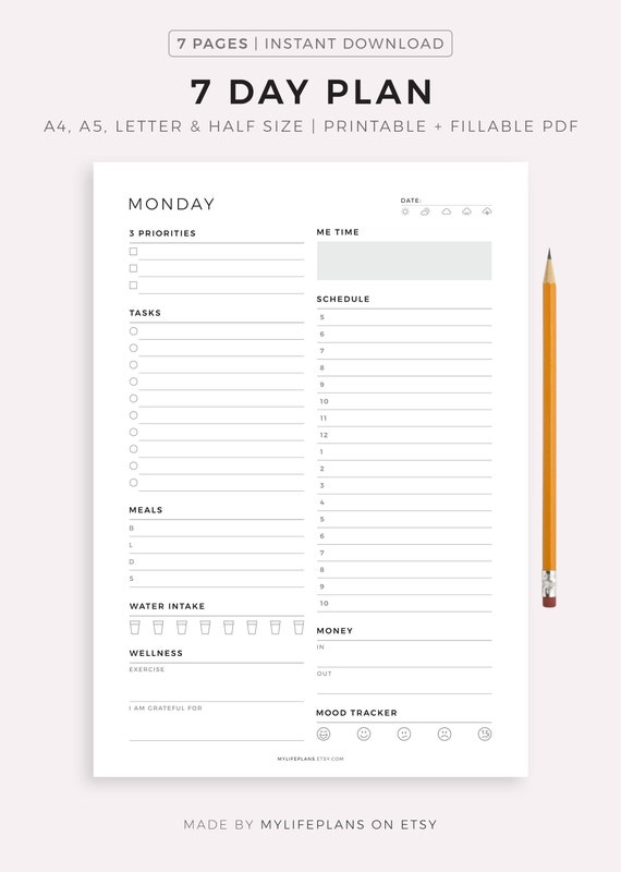 7 Day Planner Printable Weekly Planner Daily to Do List for Etsy UK