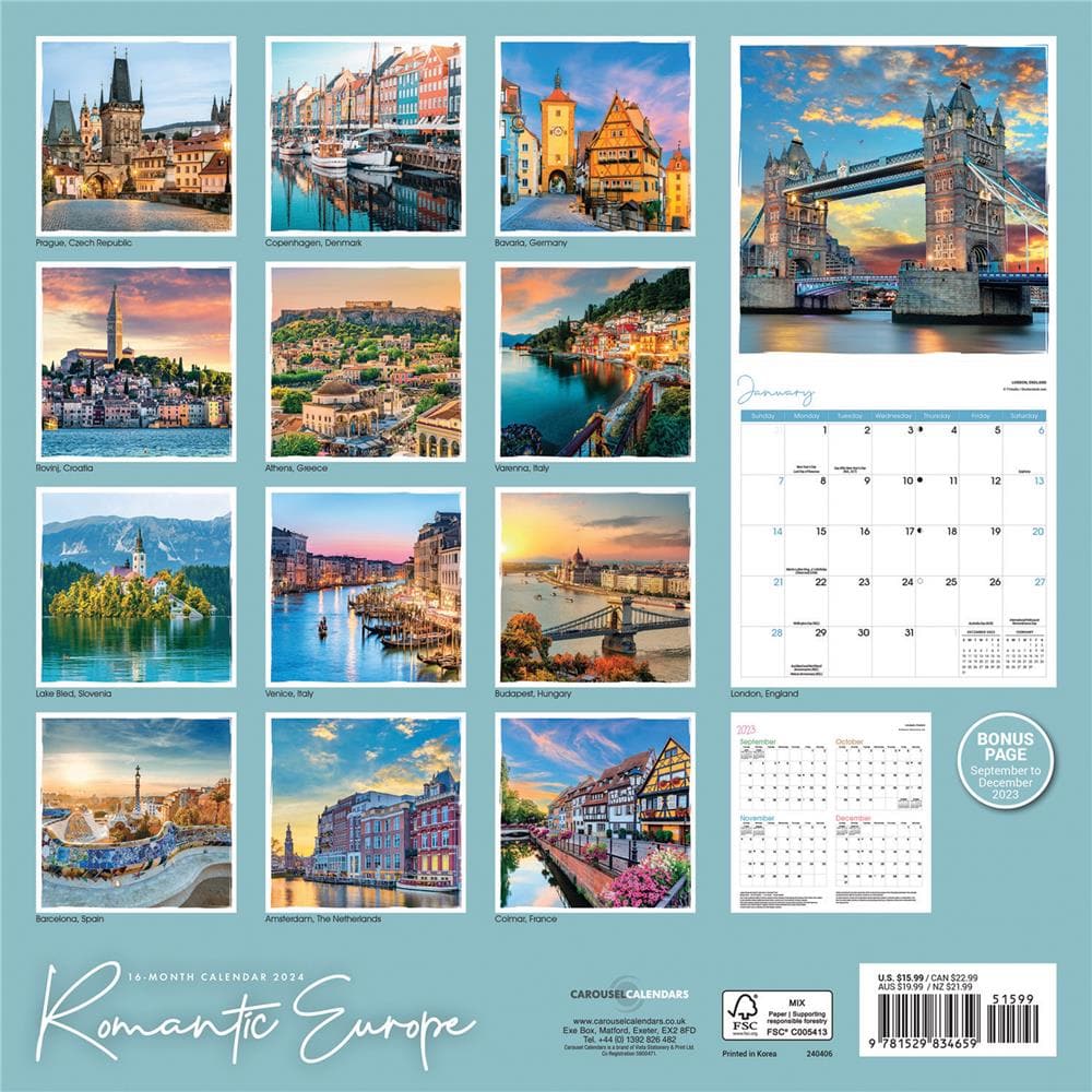 9781529834659 Romantic Europe 2024 Wall Calendar Carousel